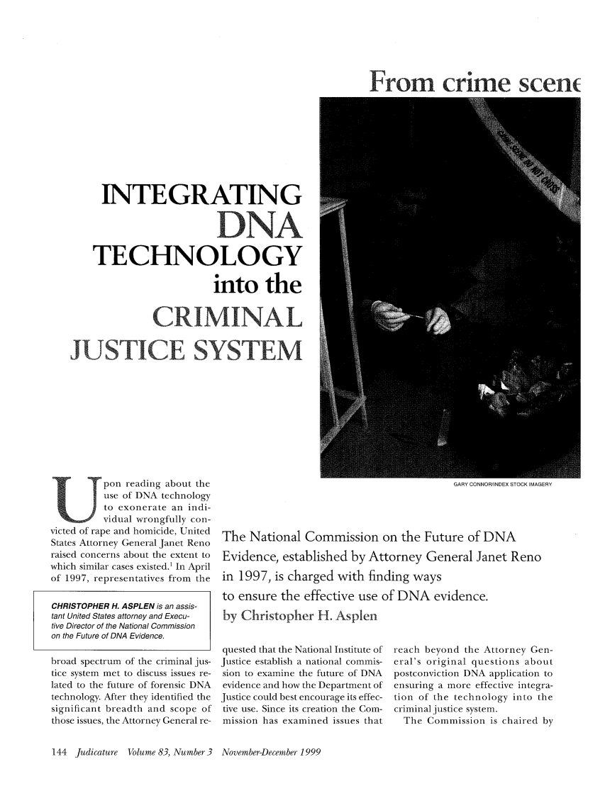 From Crime Scene To Courtroom Integrating Dna Technology Into The Criminal Justice System Genes And Justice Judicature 1999 00