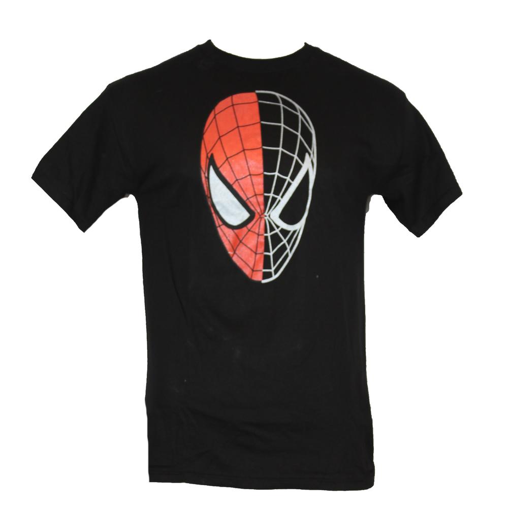 Impb Spider Man Marvel Comics Mens T Shirt Half Black Face Half Red With Silver On Black