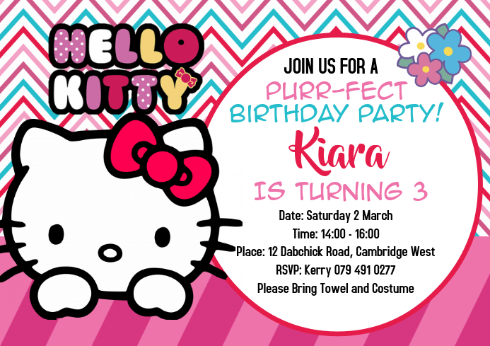 Hello Kitty Party Editable Buffet Cards Instant Download