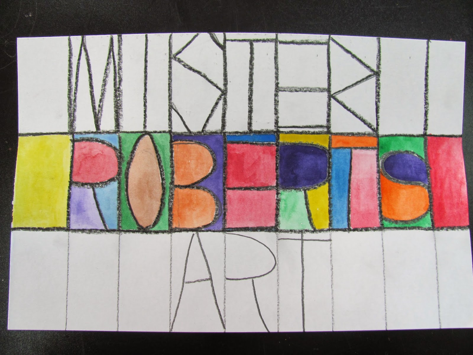 Students Choose A Shape Warm Or Cool Colors Name Art Name Art Projects Elementary Art Projects Name Design Art