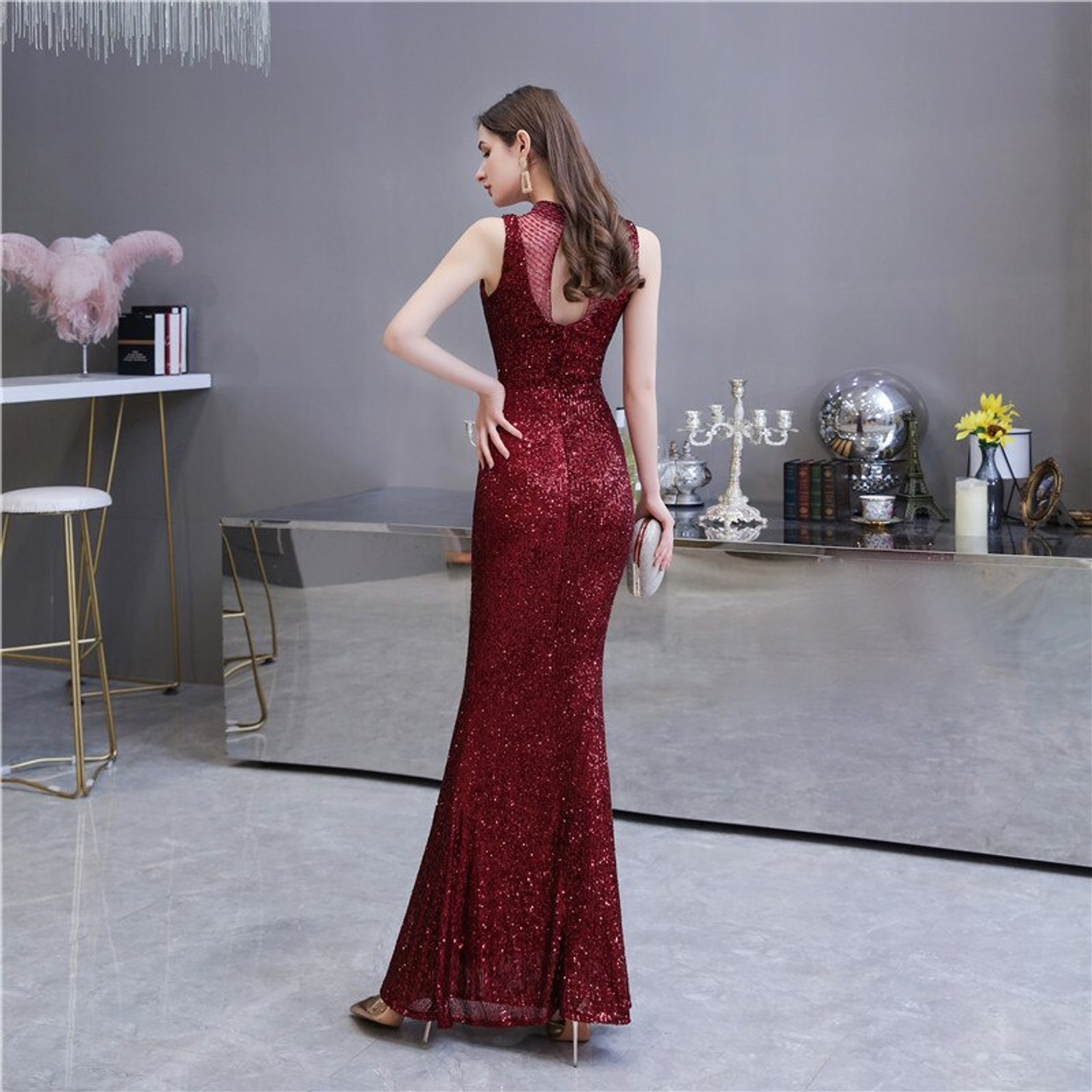 High Neck Bling Bling Mermaid Slim Prom Dresses Sequins Beading Sexy Fishtail Women Evening Party Gowns Special Occasion Dress Onshopdeals Com
