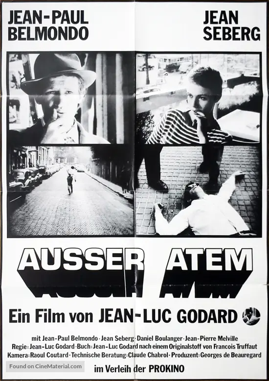 1960 Try it framed!. Breathless Theatrical release poster Directed byJean-Luc Godard Produced byGeorges de Beauregard Screenplay byJean-Luc Godard Story byFrançois Truffaut Claude Chabrol Starring Jean-Paul Belmondo Jean Seberg Music byMartial Solal CinematographyRaoul Coutard Edited byCécile Decugis Distributed byUGC Films Around The World Release date 16 March 1960 Running time 87 minutes CountryFrance LanguageFrench English BudgetFRF 400,000 Box office2,0,760 admissions Breathless is a 1960 French crime. A bout de souffle (1960) Till sista andetaget Movie poster 32x70cm nice condition FN-NM original Director:.